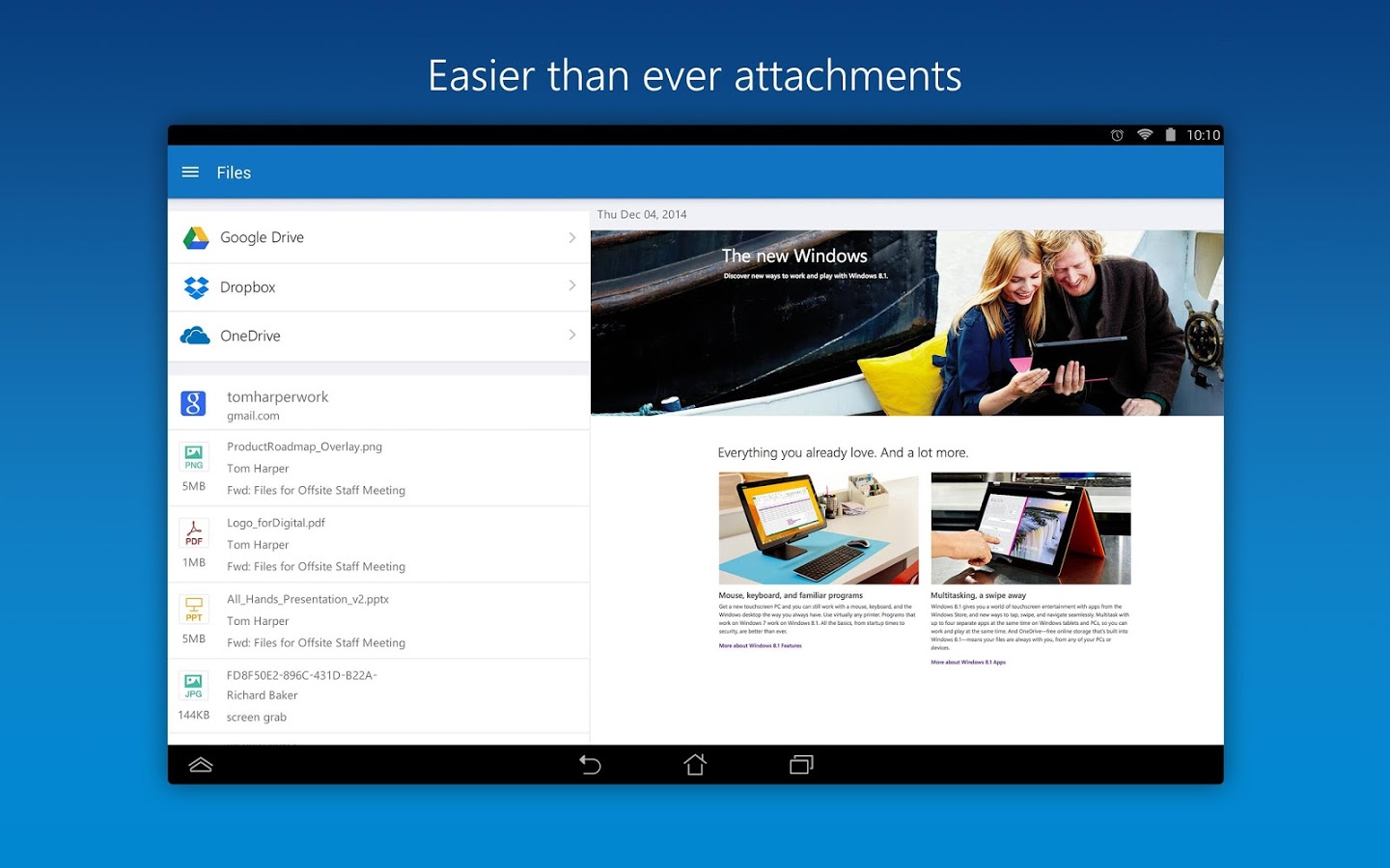 Outlook pour Android est disponible dans plus de 30 langues et vous pouvez le télécharger gratuitement sur le Play Store (Android 4.0 minimum nécessaire).
