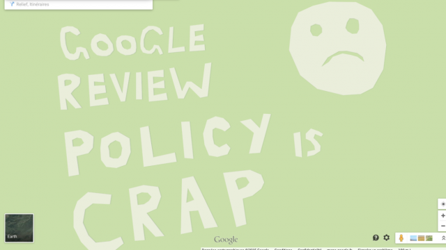 On se demande donc comment cette blague a pu être validée. D’autant plus que ce n’est pas la seule: quelques heures après, surement pour dénoncer le manque de validation de Google, ces mots étaient visibles sur d’autres coordonnées GPS: