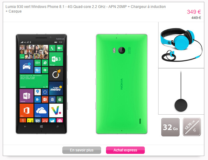 - Lumia 930: 349€ au lieu de 449€ avec un chargeur & casque offert