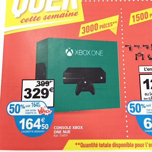 Auchan proposera dès le 3 février une offre très intéressante: pour l’achat d’une Xbox One 500Go à 329€, la moitié du prix sera crédité sur votre compte.