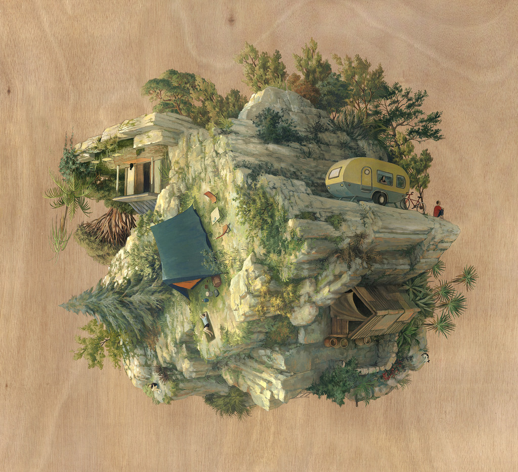 La peintre espagnole Cinta Vidal Agulló, peint sur des panneaux de bois des paysages renversants. Mais ce n’était pas la première à expérimenter ce style de perspective dont Monument Valley semble s’inspirer.