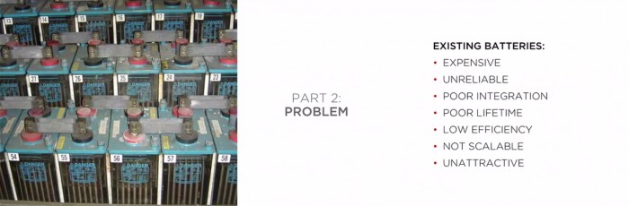 Selon Elon, les batteries actuelles ne sont pas prêtes pour compléter cette tâche. Chères, elles ne sont en plus pas fiables, s’intègrent mal dans les systèmes de panneaux solaires actuels, n’ont pas une bonne durée de vie, et ne peuvent pas être combinées entre elles. Et biensûr, du point de vue de Tesla, elles sont peu attrayantes: