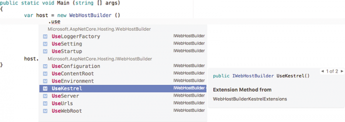 Intellisense est bien-entendu disponible pour la complétion et la suggestion du code lorsque vous tapez: