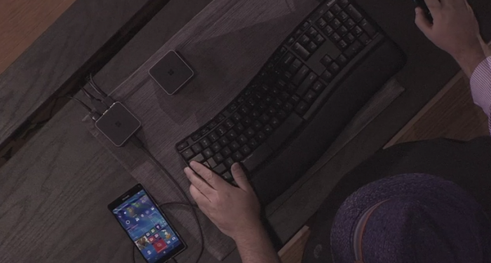 Comme les rumeurs le disait, Microsoft a aussi présenté un dock pour les Lumia 950 qui permet de facilement connecter le téléphone sur un écran HDMI et d’ainsi le transformer en véritable ordinateur. Tout petit, celui contient une sortie HDMI ainsi que trois ports USB, permettant de brancher une souris/clavier ainsi que des périphériques de stockage par exemple.