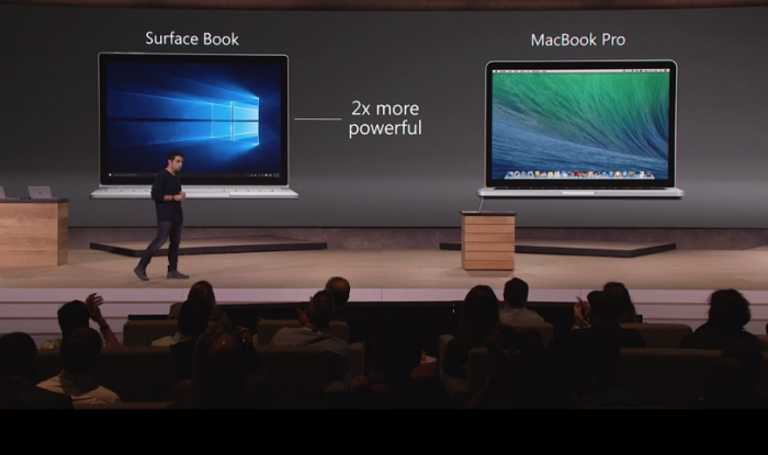 Grâce à l’utilisation des derniers processeurs Intel Skylake et d’un GPU (optionnel) NVidia très rapide, le Surface Book est annoncé comme deux fois plus rapide que le MacBook Pro d’Apple. Aucun compromis d’utilisation.
