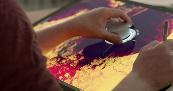 Le Surface Dial est un nouveau périphérique rond qui est maintenant totalement intégré à Windows: en le tournant il est possible de zoomer/dézoomer sur un dessin, mais aussi de revenir en arrière lors du dessin au stylet.
