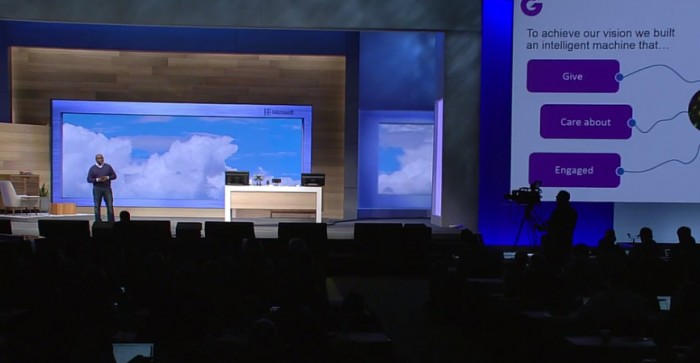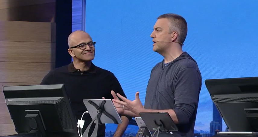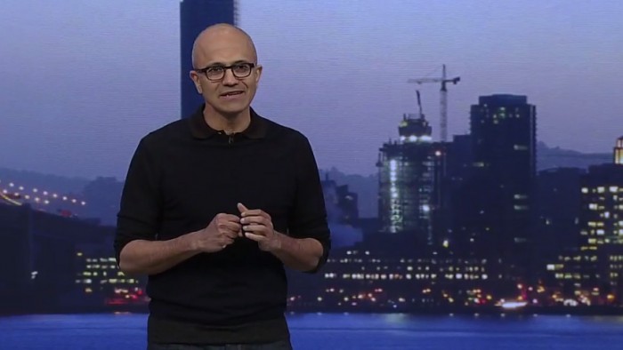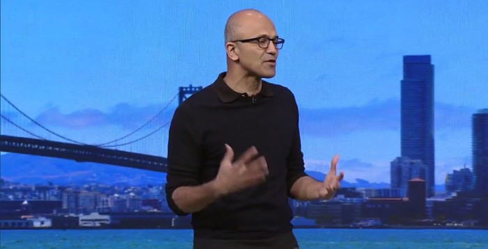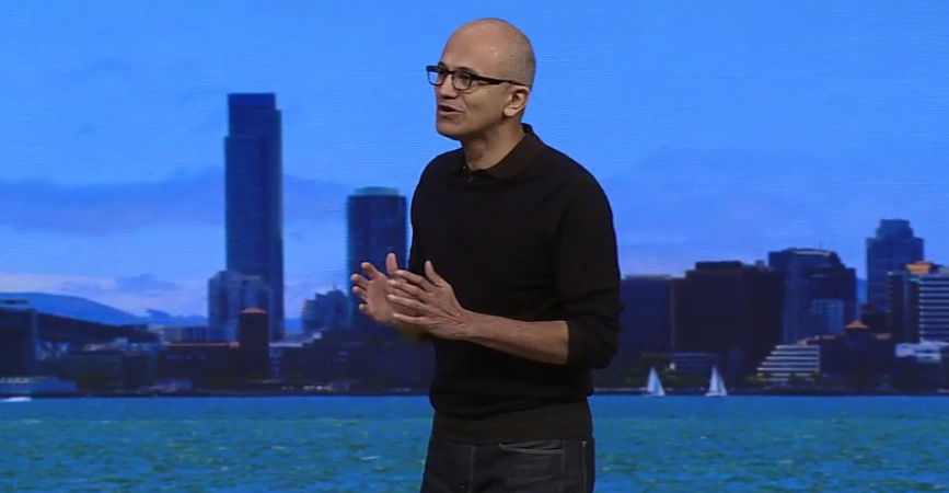 C’est parti! Satya Nadella, le PDG de Microsoft rentre sur scène.