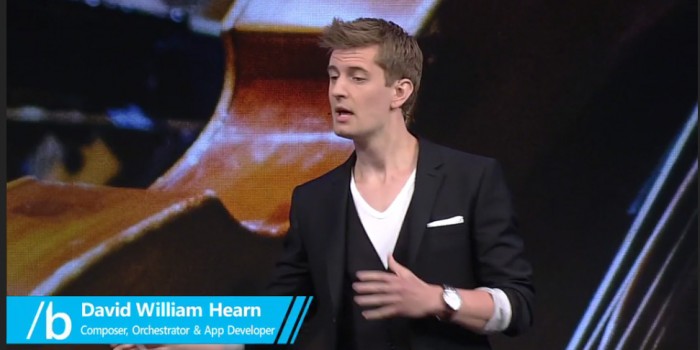 David William Hearn, compositeur de musique de films (Les Misérables, Narnia) rentre sur scène pour faire une démonstration de ce qu’il est possible de faire avec la Surface 3.