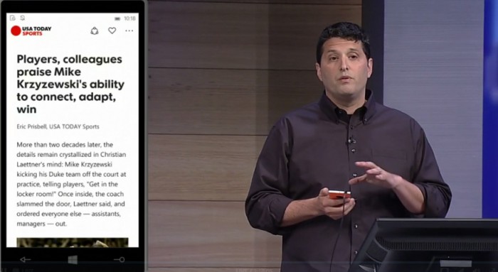 Continuum sur smartphone est annoncé. Joe fait une démonstration.