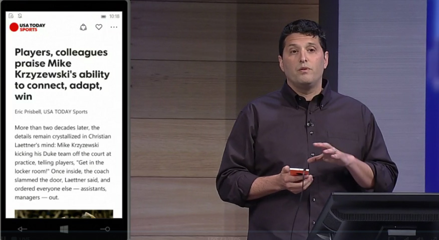 Joe Belfiore est sur scène pour montrer les nouveautés de Windows 10. Miam!