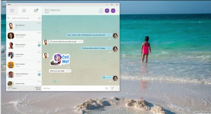 Joe présente les améliorations de Cortana qui comprend maintenant un langage plus familier. Il lance Viber en disant « Hey Cortana, lance Viber! »