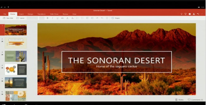 Un smartphone est relié en HDMI sur un écran. Office est affiché dessusn et s’adapte à l’écran, on dirait la version desktop: « c’est le même code! ».