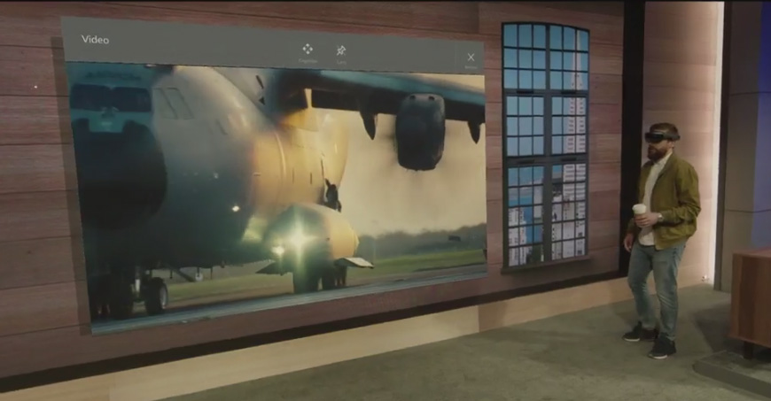 Une application Holo Lens fonctionnant sur Windows 10 est montrée.