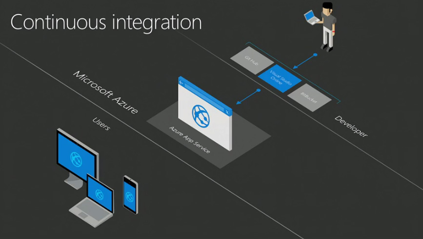 Azure App Service est une des solutions Azure permettant de gagner en productivité. Azure s’intègre avec les services comme Github, Bitbucket.