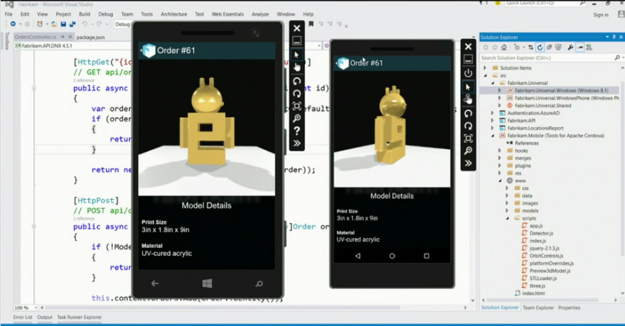 Visual Studio est utilisé pour développer des applications web, avec bower,… intégré. Les émulateurs Android & Windows Phone permettent de tester à pleine vitesse les applications.