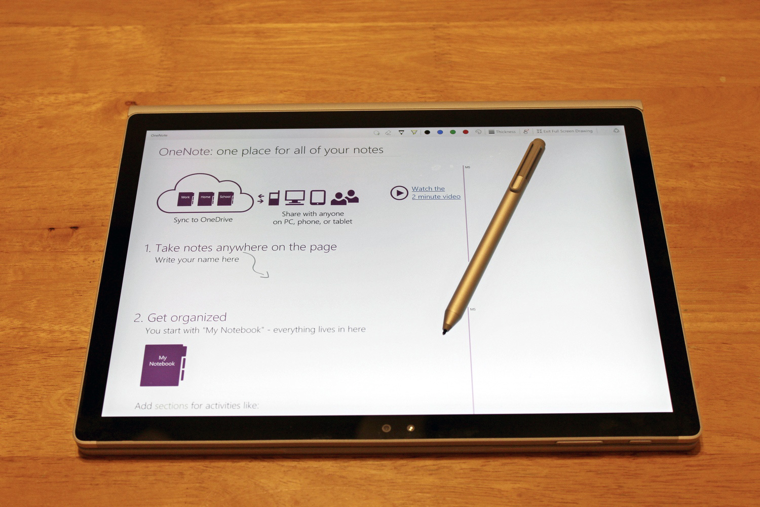 - Un clic simple sur le bouton du stylet pour lancer OneNote