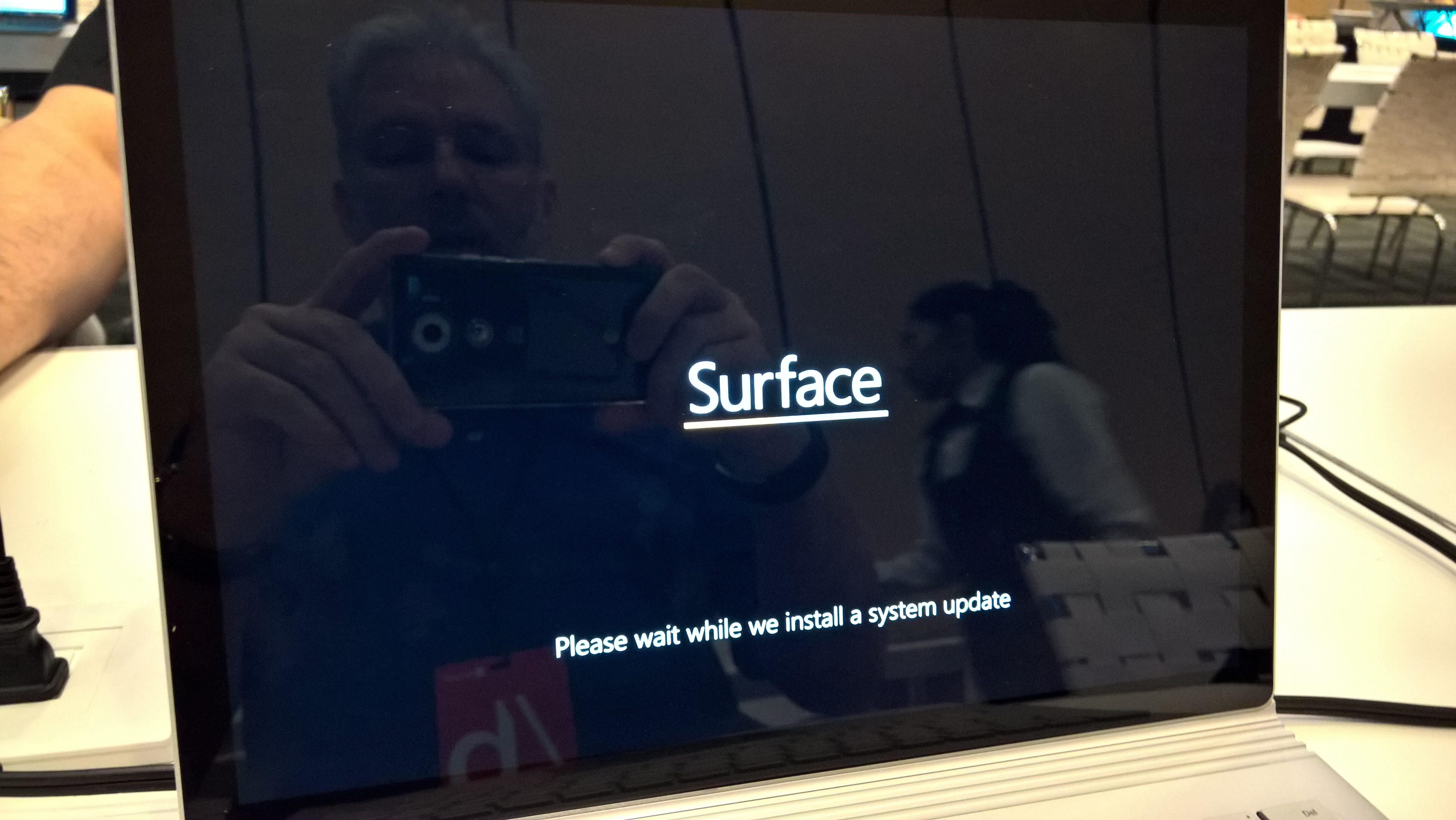 L’ordinateur redémarre, et le logo Surface apparaît, avec une barre de progression dessous: ce doit être la mise à jour du firmware… Après quelques minutes, l’ordinateur redémarre sous Windows.