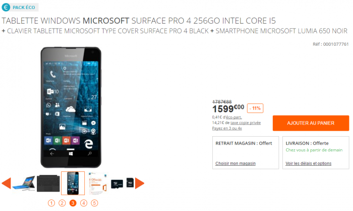 Boulanger propose depuis quelques mois un pack comprenant Surface Pro 4 + Lumia 650