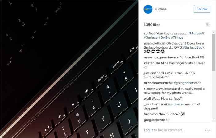 Microsoft vient de teaser sur son compte Instagram en postant des photos d’un clavier qui pourrait être celui du Surface Book 2.