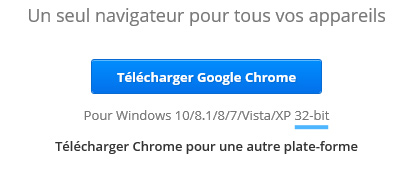 Note: le site devrait vous proposer par défaut la version 32-bit de Chrome: